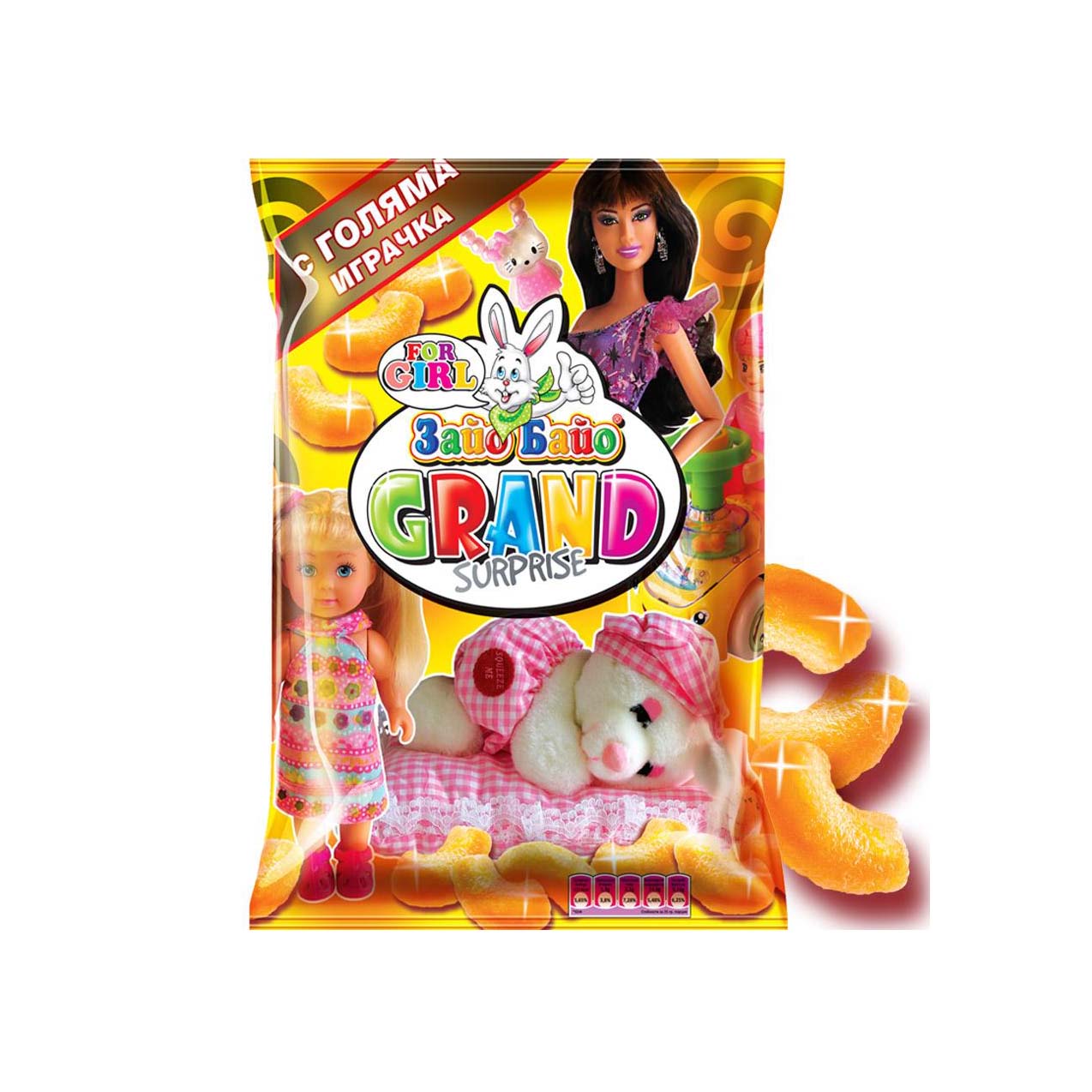 Entdecken Sie die SAJO BAJO Weizenflips GRAND – der knusprige Snack mit Überraschung! Diese leckeren Weizenflips kombinieren perfekten Geschmack mit einem süßen Extra: einer exklusiven Spielzeug-Überraschung speziell für Mädchen. Ideal für kleine Entdeckerinnen, die nach dem Naschen mit einer tollen Belohnung rechnen können. Die luftig-leichten Flips sind nicht nur unwiderstehlich, sondern auch in einer praktischen 100g-Packung verpackt – perfekt für unterwegs, als Pausensnack oder als kleine Belohnung.Zutaten: Weizenmehl, pflanzliches Öl (Palmöl), Zucker, Salz, Aroma, Farbstoffe (Paprikaextrakt, Kurkumin), Backtriebmittel (Ammoniumhydrogencarbonat).