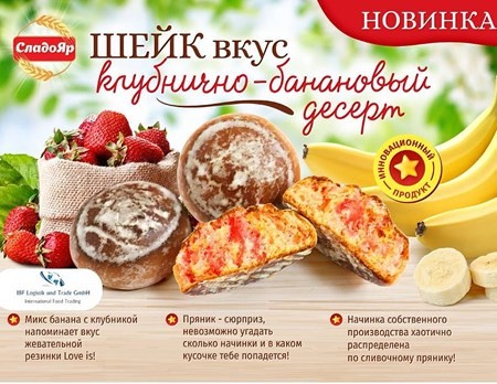 Genießen Sie den einzigartigen Geschmack der SladoJar Prjaniki mit Erdbeer-Bananengeschmack! Diese köstlichen, weichen Lebkuchen überraschen mit einer unvorhersehbaren Füllung – in jedem Stück verbirgt sich eine zufällig verteilte Portion der cremigen, fruchtigen Mischung aus Banane und Erdbeere.Der süße, tropisch-fruchtige Geschmack erinnert an das beliebte Love Is...-Kaugummi und sorgt für ein außergewöhnliches Geschmackserlebnis. Die Kombination aus zartem Lebkuchenteig und saftiger, aromatischer Füllung macht diese Prjaniki zu einem besonderen Genussmoment. Perfekt als Snack für zwischendurch, für Kinder oder als süße Überraschung für Gäste.