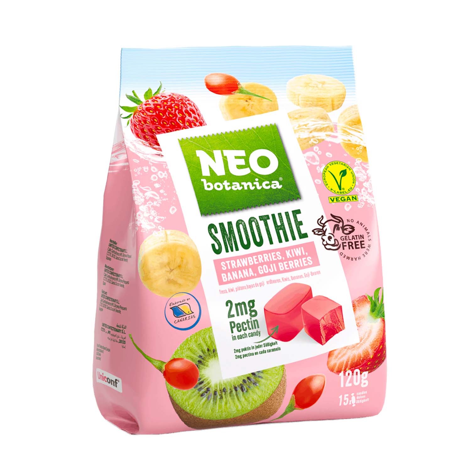 - NEO Botanica Smoothie Erdbeere, Kiwi, Banane, Goji-Beere, 120 g - Leuchtend fruchtiger Genuss mit vier Superfrüchten. Süße Erdbeeren und Bananen, ergänzt durch erfrischende Kiwi und antioxidative Gojibeeren – ein echter Energie-Kick.